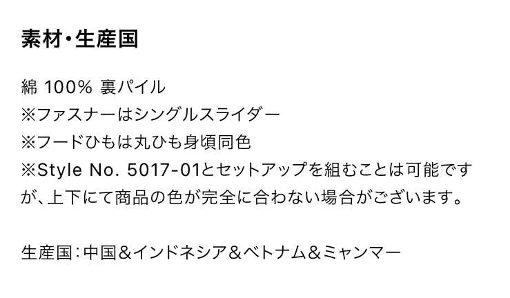 オリジナルジップ付きパーカー